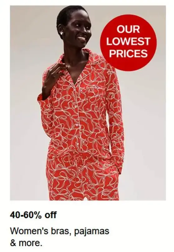 Get it quick! Shop in store and get 40-60% off women's bras, pajamas, & more.