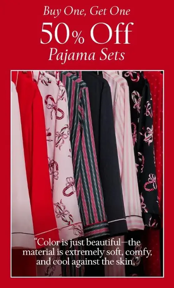 Save big now! Shop in store and enjoy buy one, get one 50% off pajama sets.