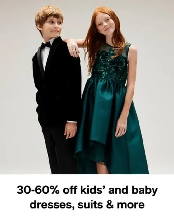 Hurry! Shop in store and get 30-60% off kids' and baby dresses, suits & more.